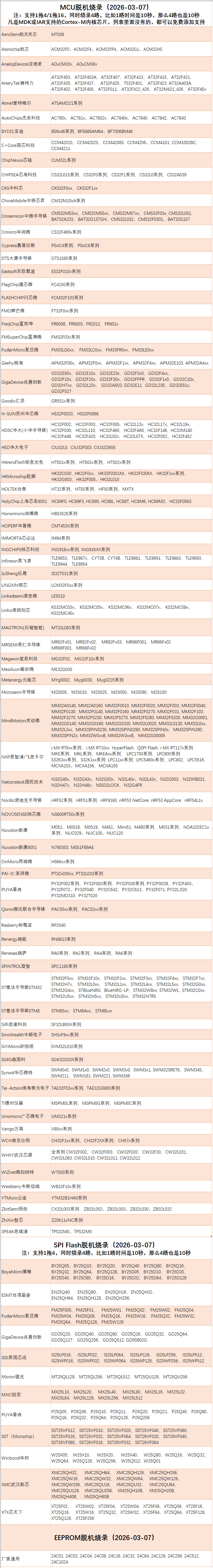 4、SPI Flash脱机烧录,支持GD,镁光,华邦,旺宏,SST,复旦微,XTX芯天下,XMC武汉新芯,PUYA普冉,BoyaMicro博雅,ESMT台湾晶豪。